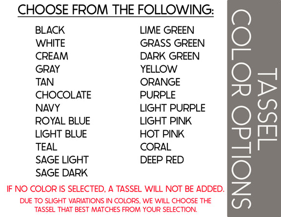 Optional tassel available in your choice of color
