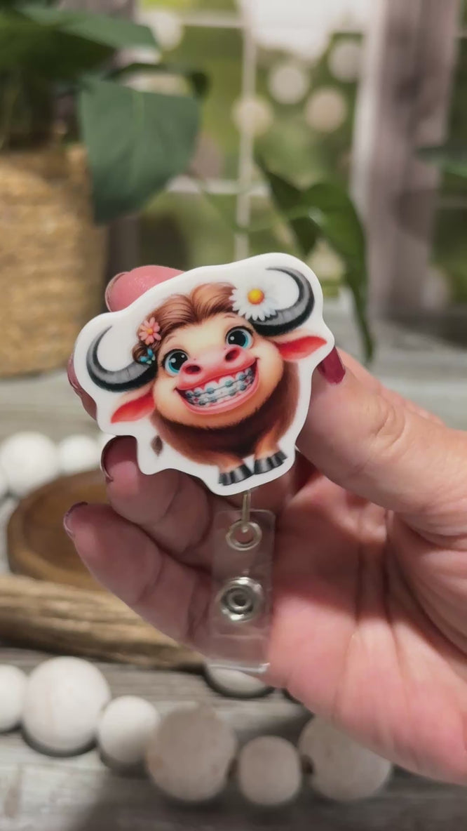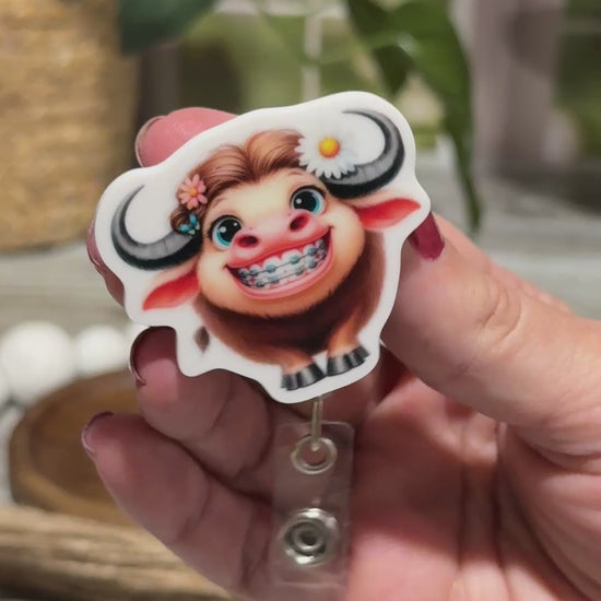 Brighten up your workday with the Highland Cow In Braces Retractable Badge Reel! This irresistibly adorable accessory features a cheerful highland cow sporting a bright, confident smile with braces! Perfect for dental professionals, orthodontists, or anyone who loves a fun, pun-filled twist on everyday essentials, this badge reel is sure to make a statement.