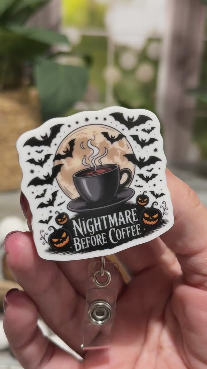 Start your day with a touch of spooky charm and a whole lot of caffeine with the Nightmare Before Coffee Retractable Badge Reel! Perfect for those who aren't quite ready for the morning shift and rely on that essential boost of coffee, this adorable badge reel features a steaming cup of coffee propped in front of a glowing full moon, surrounded by playful bats. It’s a fun, whimsical accessory that adds personality and humor to your daily work essentials.