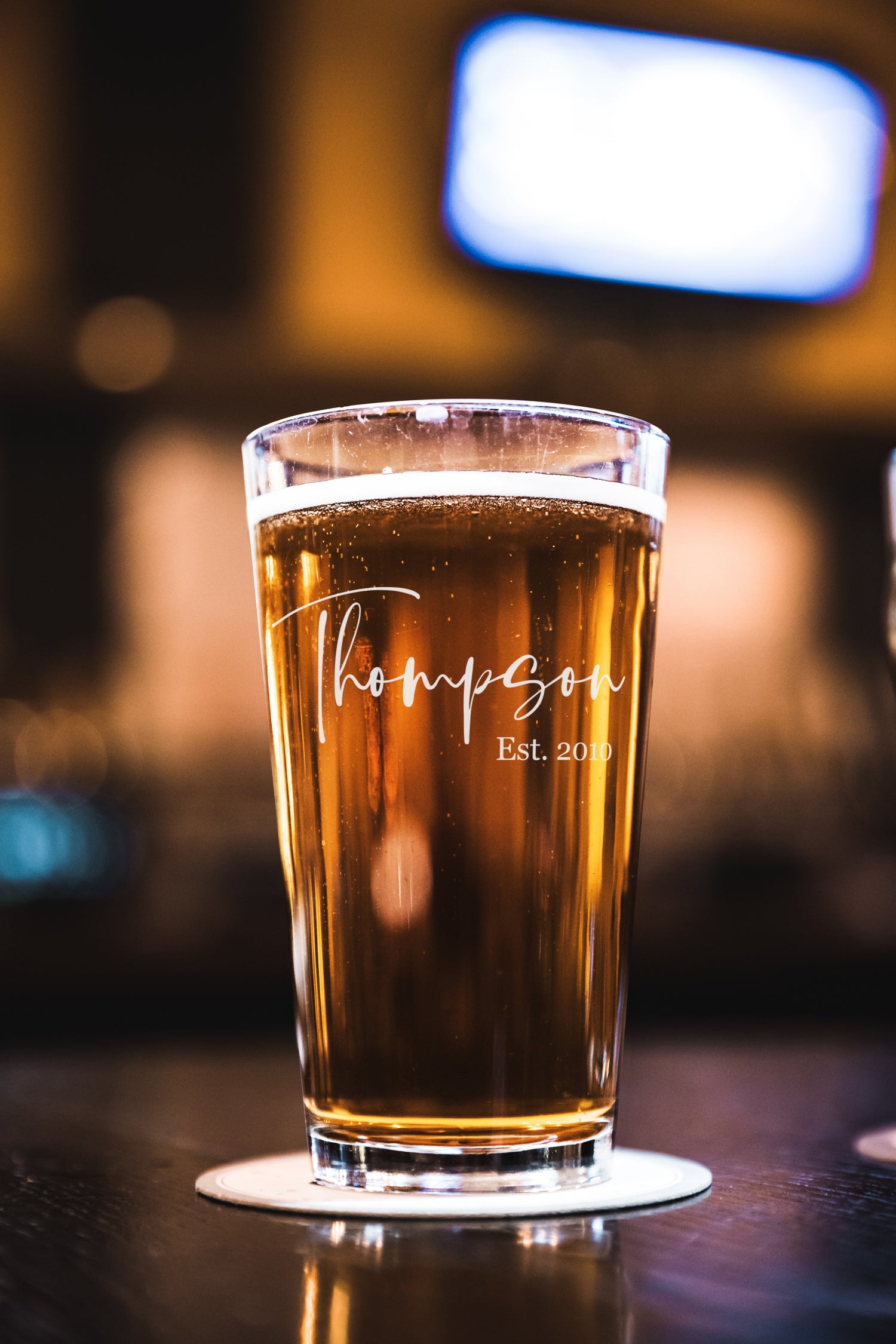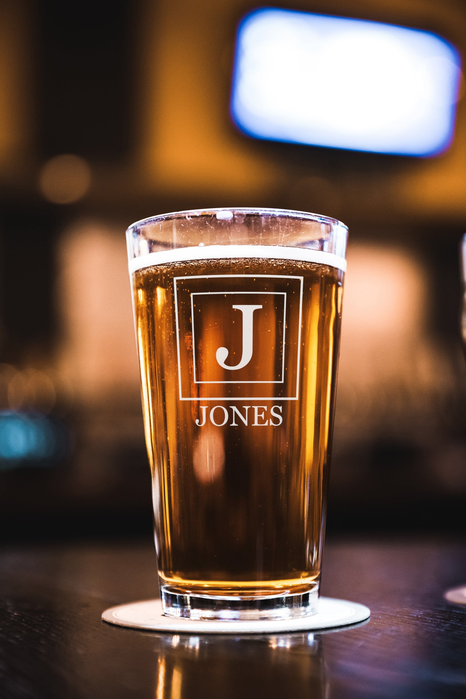Monogrammed Pint Glass – laser engraved Beer Glass with Pre-Designed Graphics | 16oz Gift for Drink Lovers